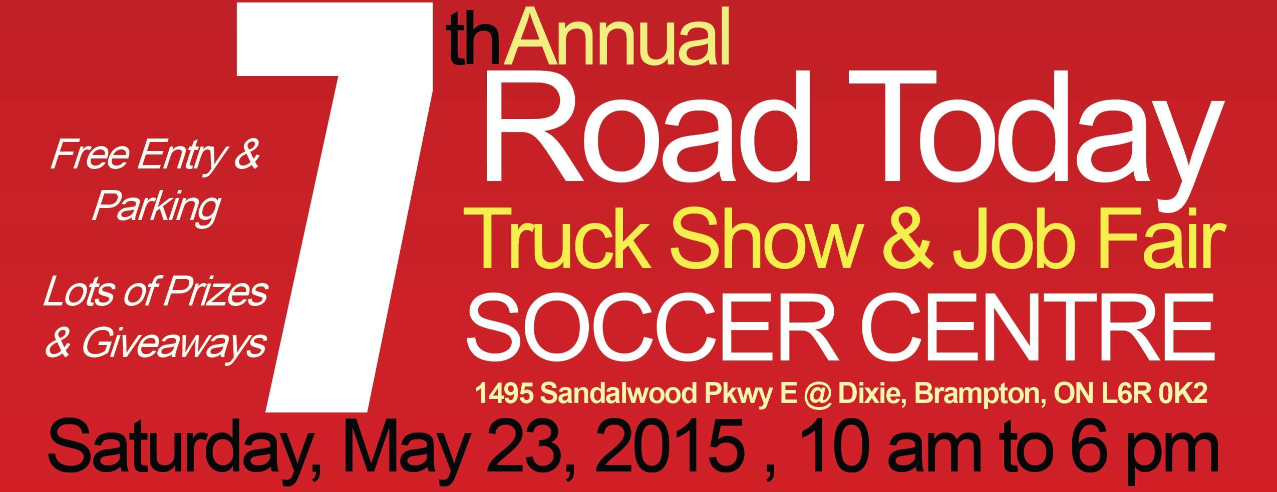 The 7th edition of the Road Today Truck Show will be held at the Soccer Centre (1495 Sandalwood Parkway E @ Dixie/Sandalwood) in Brampton on Saturday, May 23rd.