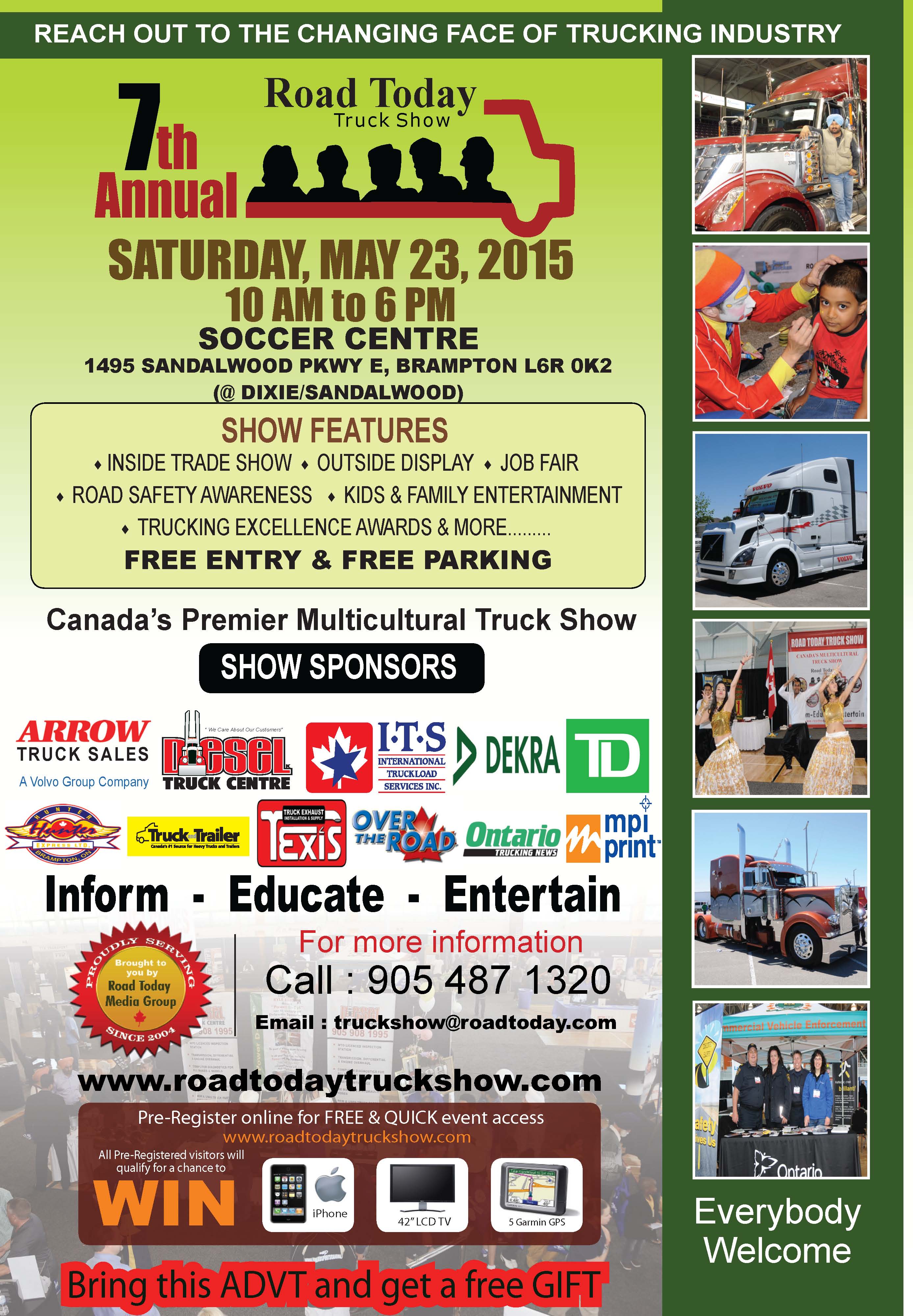 The much awaited annual Show will include plenty of activities including indoor trade show, job fair for AZ drivers and owner-operators, outdoor display, MTO road safety awareness with driving simulator, kids and family entertainment, giveaways, prizes and lots more.